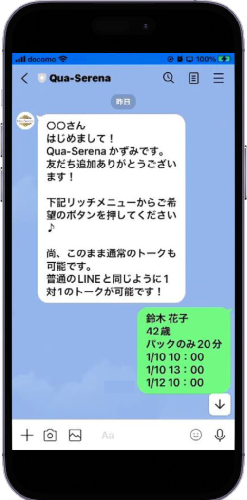 ご予約前にご相談されたい方は、通常のLINEのようにメッセージを送ってください♪