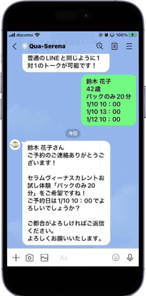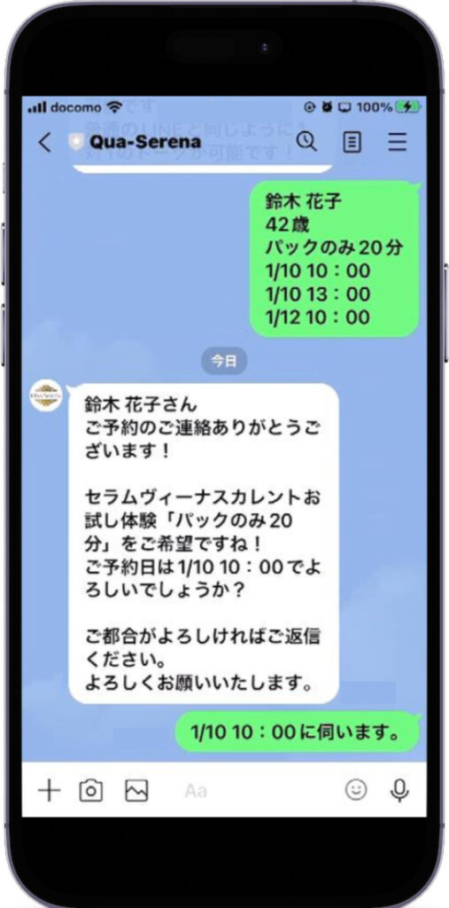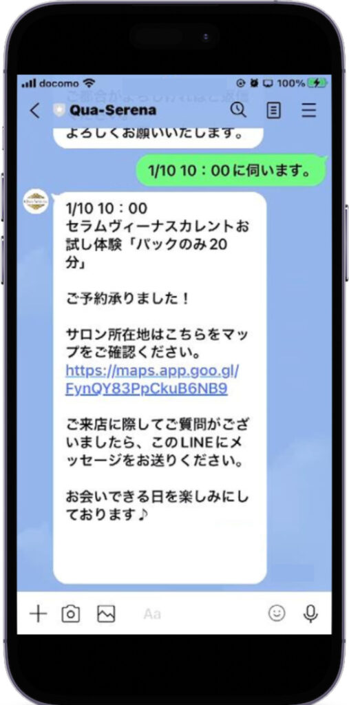 サロンからご予約内容確認メッセージをお送りしご予約確定となります。